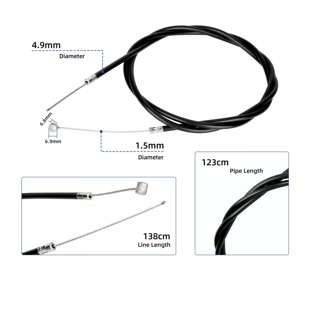 Elektromos roller alkatrész. 125 cm hosszú fékkábel fekete színű házban. Használható Kukirin G2, G3 és A1 típusú elektromos rollerek első fékjeihez.