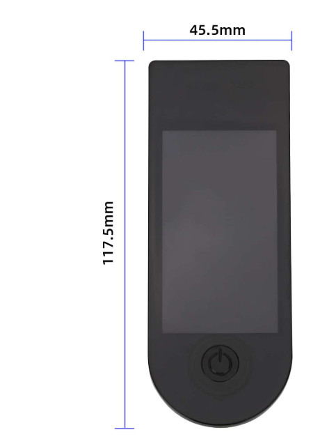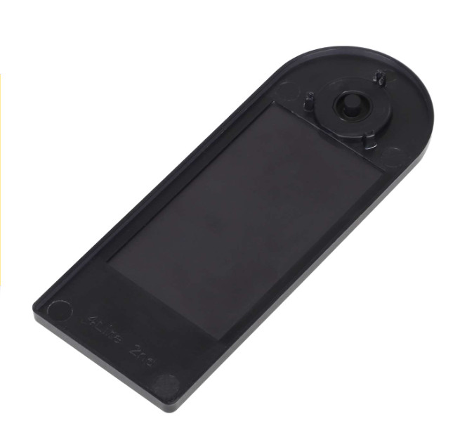 Electric scooter part. Black transparent plastic cover to cover the display. This product also includes a 2-sided adhesive cut to size, so installing the cover is a breeze.